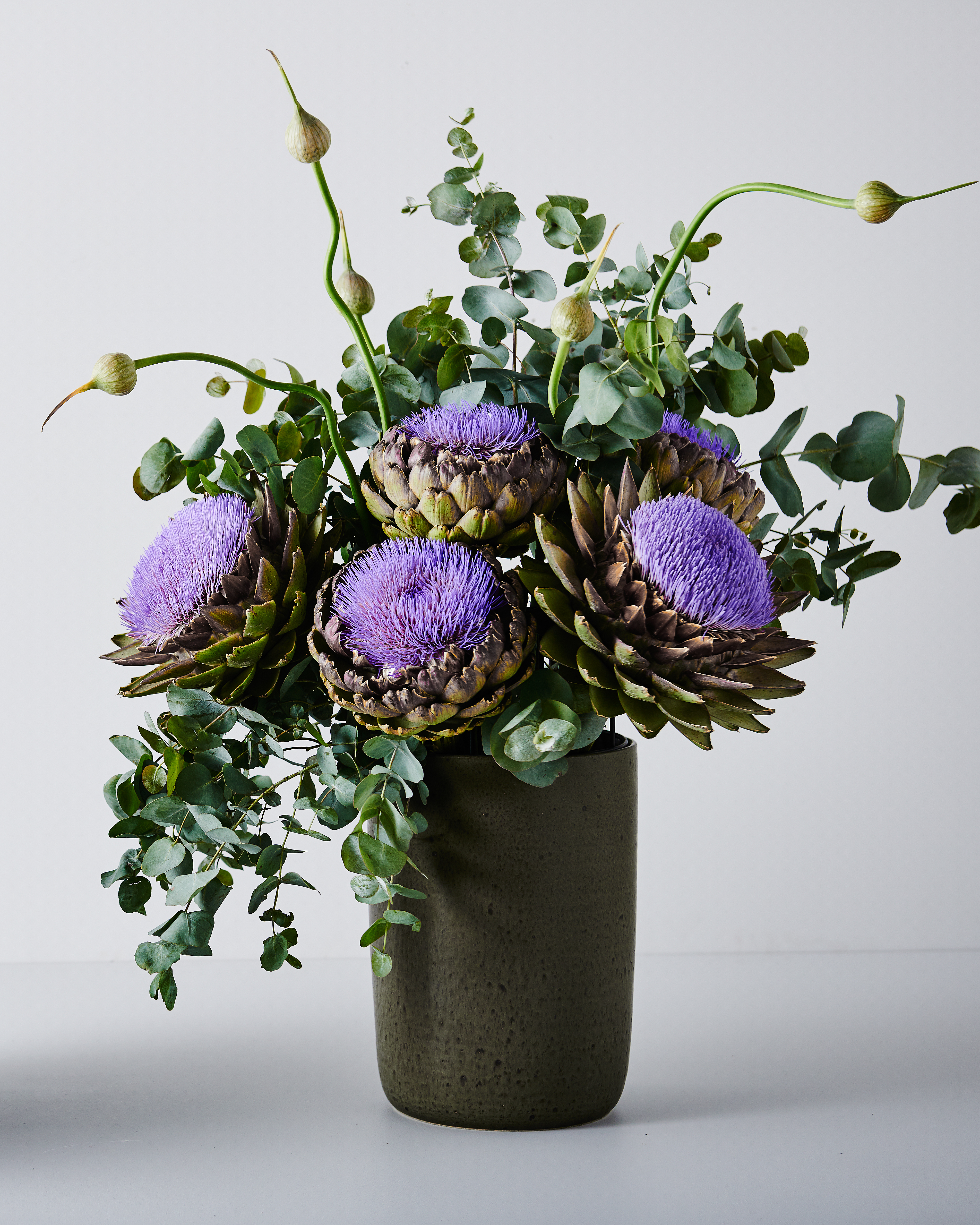 A wire support framework to sit inside the display vase was also designed and made in the studio. This could be inserted and removed to suit the required design as well as to support larger volumes of foliage and taller botanical arrangements.