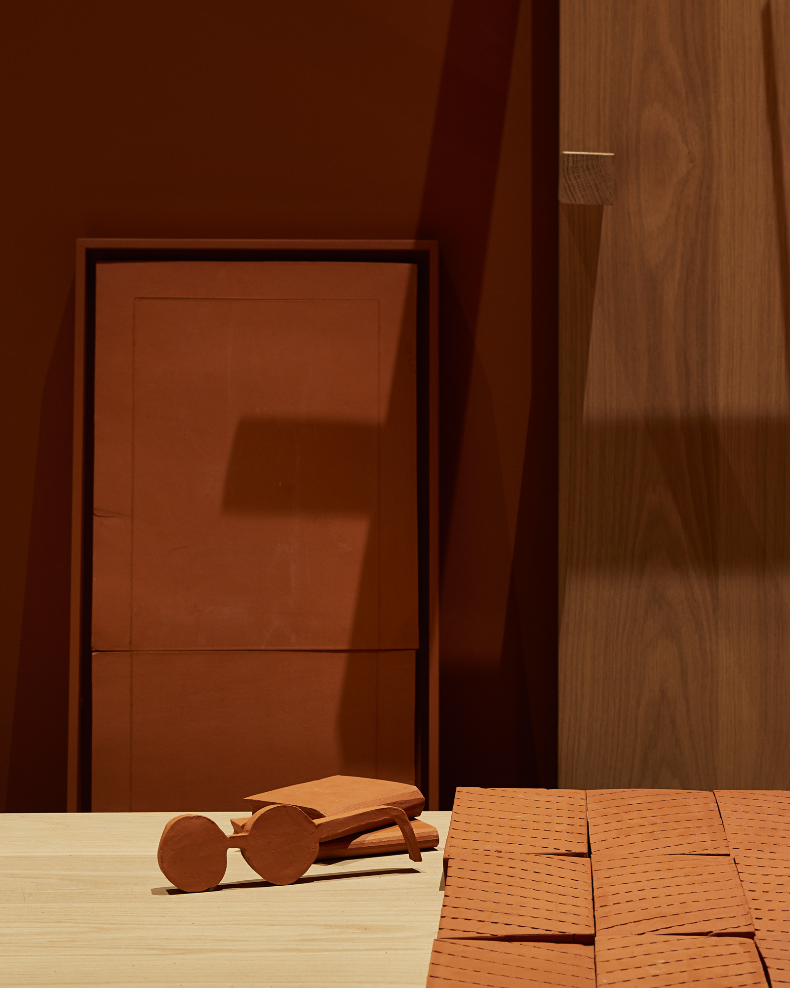 We started with the idea of terracotta as material and the objects of everyday domesticity as the beginnings of a dialogue between a table, the activity that takes place on and around it and domestic space. And in response to that thinking, we designed and made a range of simplified and symbolic domestic objects for the Hecker Guthrie space.