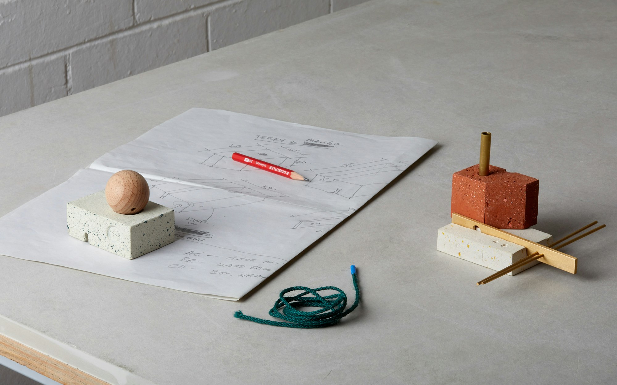 In Spring of 2020, the studio used these new clays as the starting point to create an imagined object that invited users to be playful through a series of ceramic, metal and wood objects intended to be assembled in an infinite combination of ways.